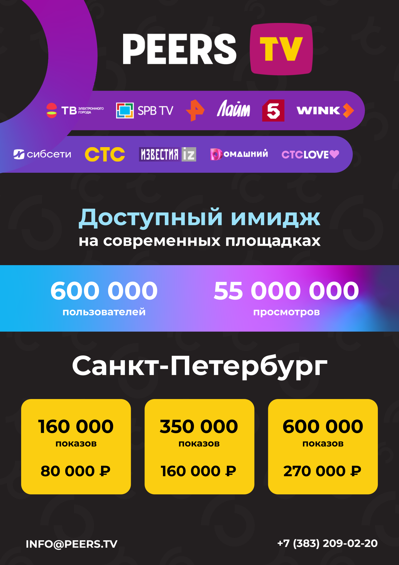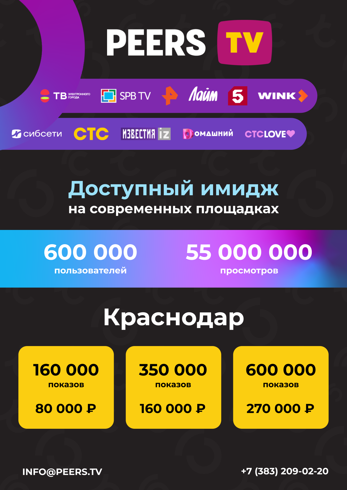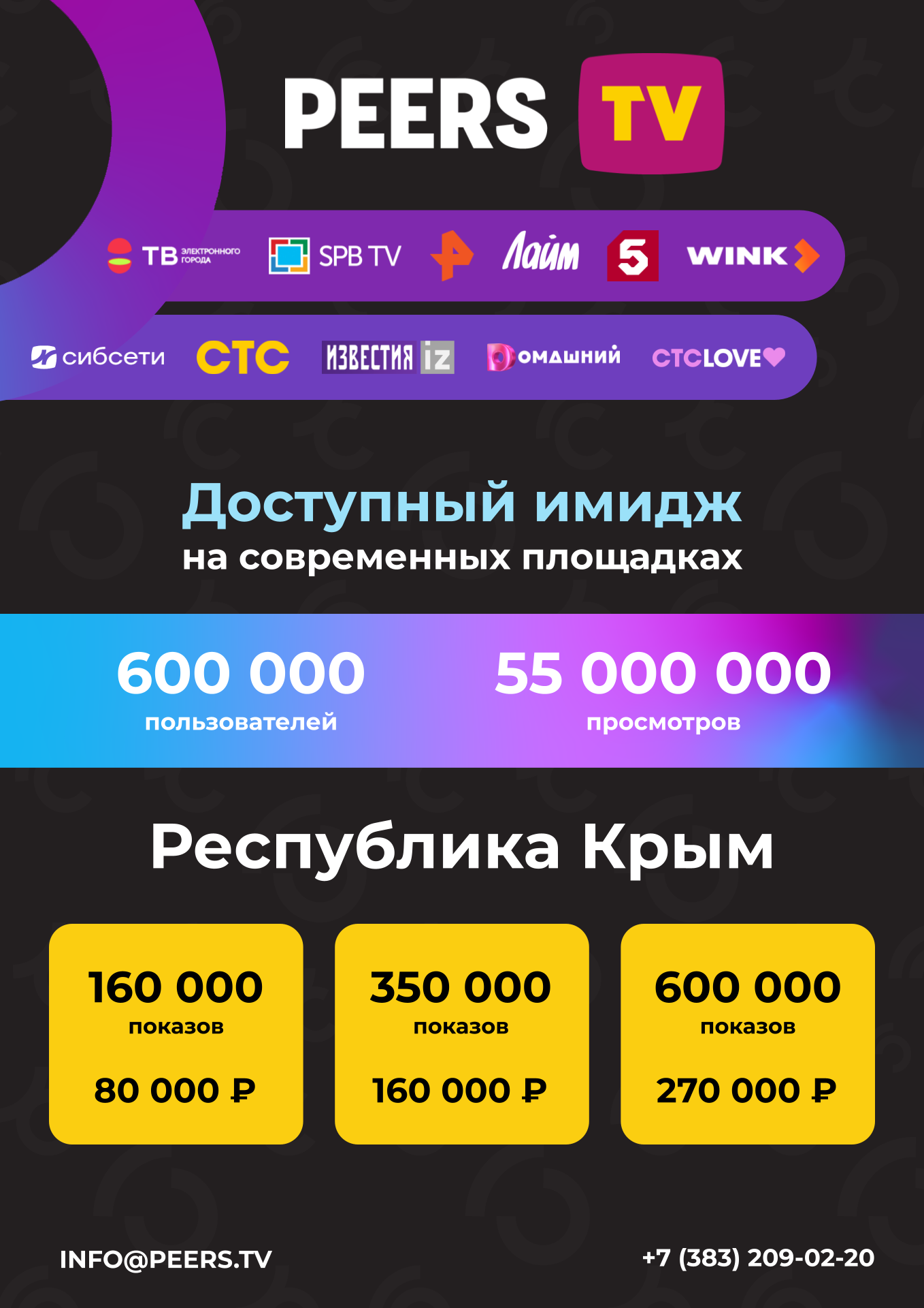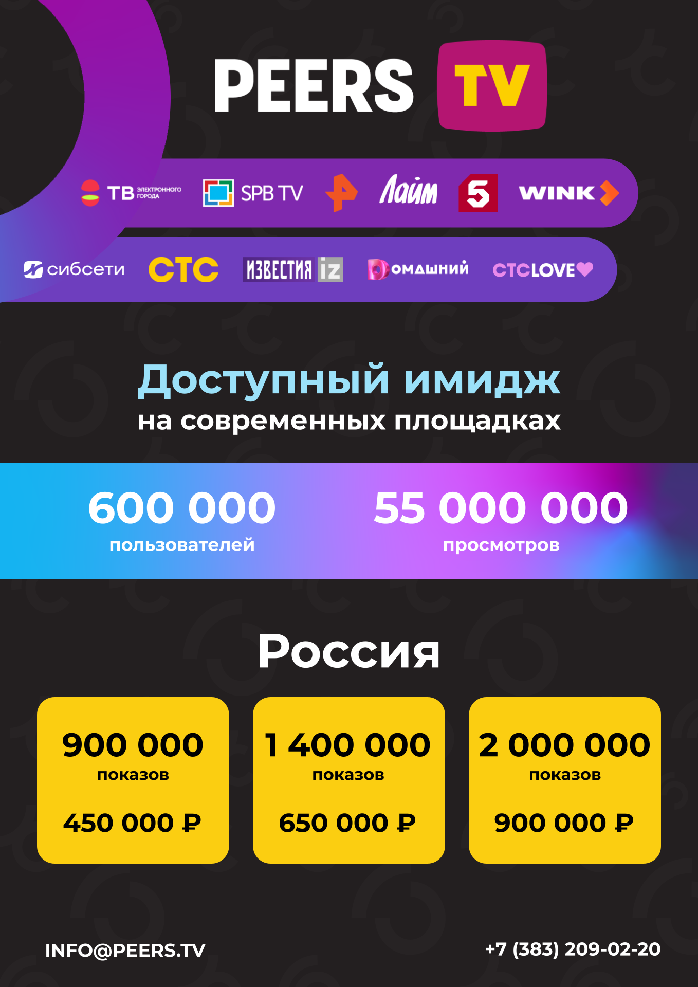 Размещаем рекламный блок на Peers.TV более 6 месяцев с выбранным рекламным пакетом на 900000 показов в месяц. Это бесспорно самый массовый на нашей практике охват аудитории.